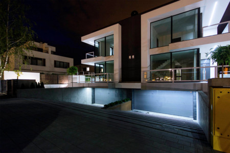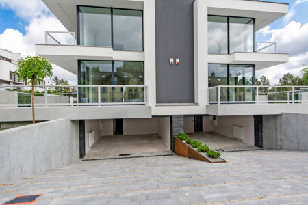 Budynek jednorodzinny w zabudowie bliźniaczej o nowoczesnej architekturze, wkomponowujący się w przestrzeń architektoniczna otoczenia z podziemnym dwustanowiskowym garażem.