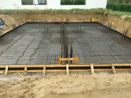 Posadowiony na płycie fundamentowej o grubości 25 cm.